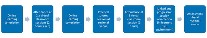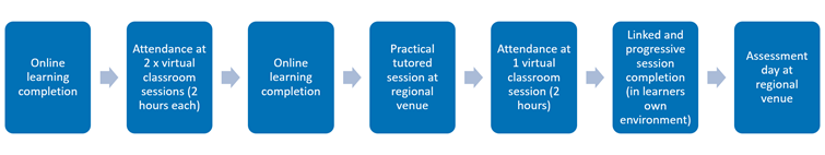 This course is delivered using a blended learning approach (i.e. face to face and online delivery). Your pre-course email will specify the dates you are required to attend. This usually consists of: